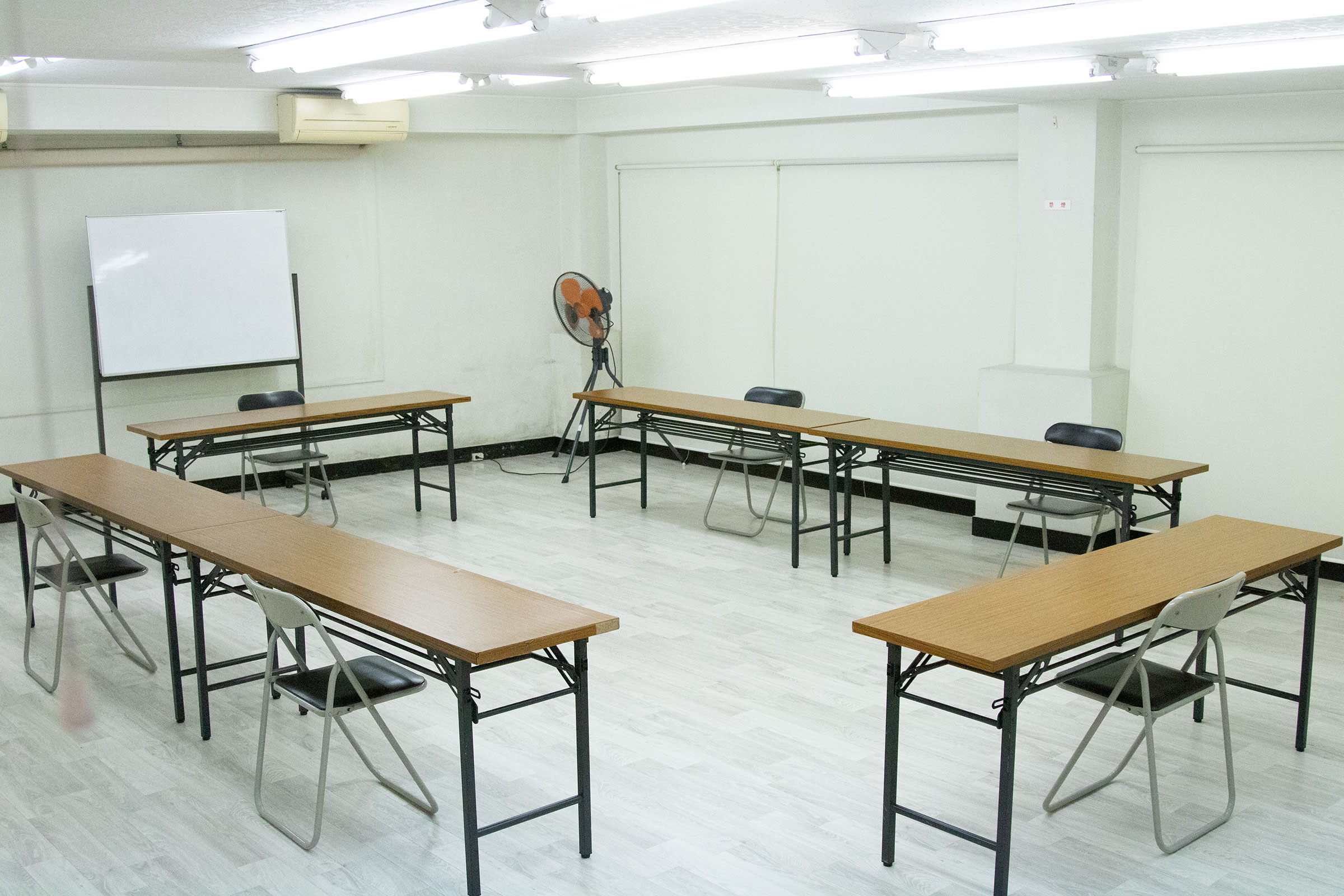 ビジネス用途から習い事、稽古事まで使い勝手のよいオープンスペースです。長机、イス、ボード、スクリーンも無料で使えます。